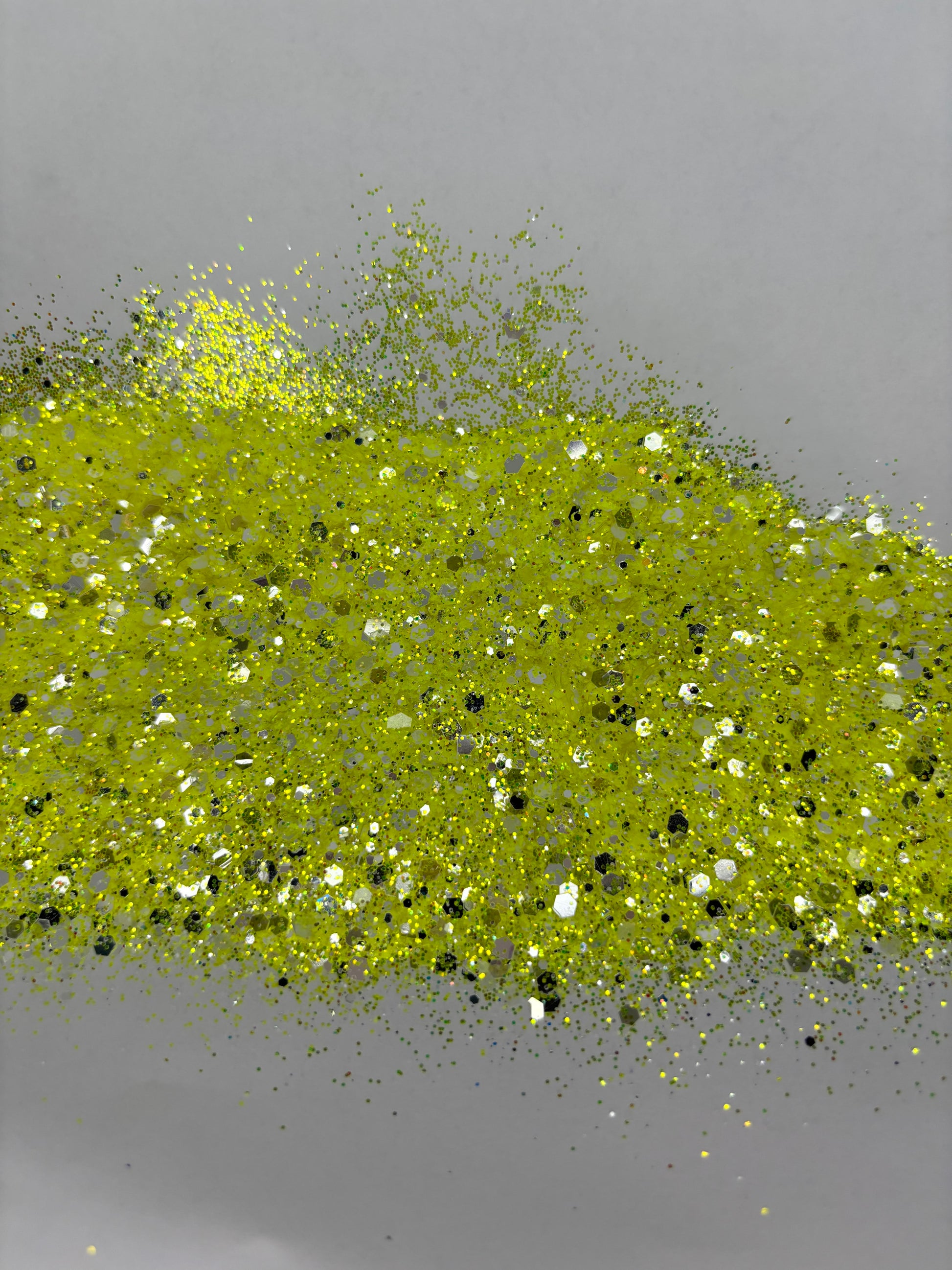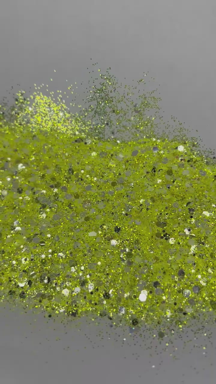 Limoncello, the perfect blend of yellow and silver chunky metallic and iridescent glitter.