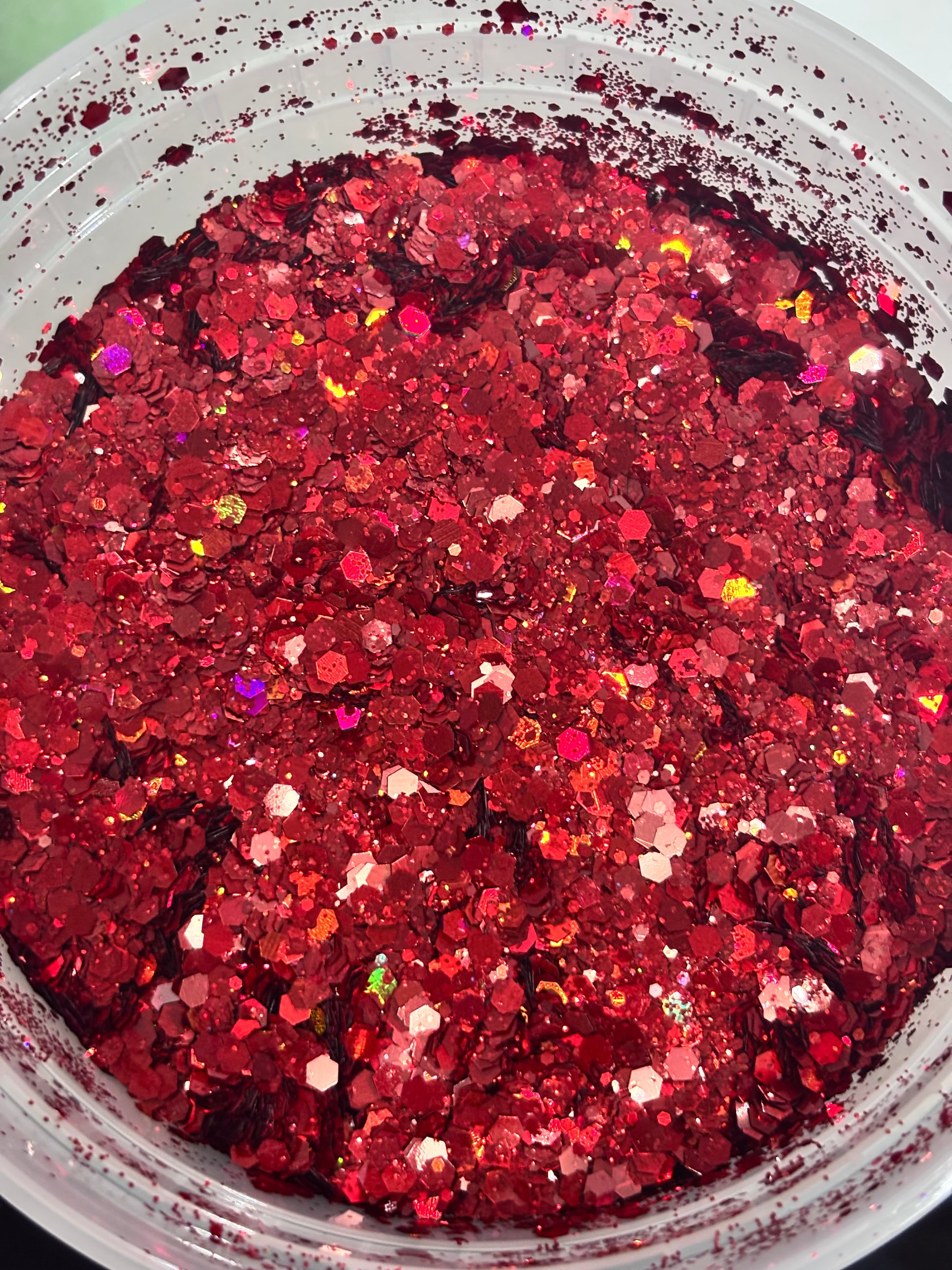 Marilyn is a red chunky holographic glitter.