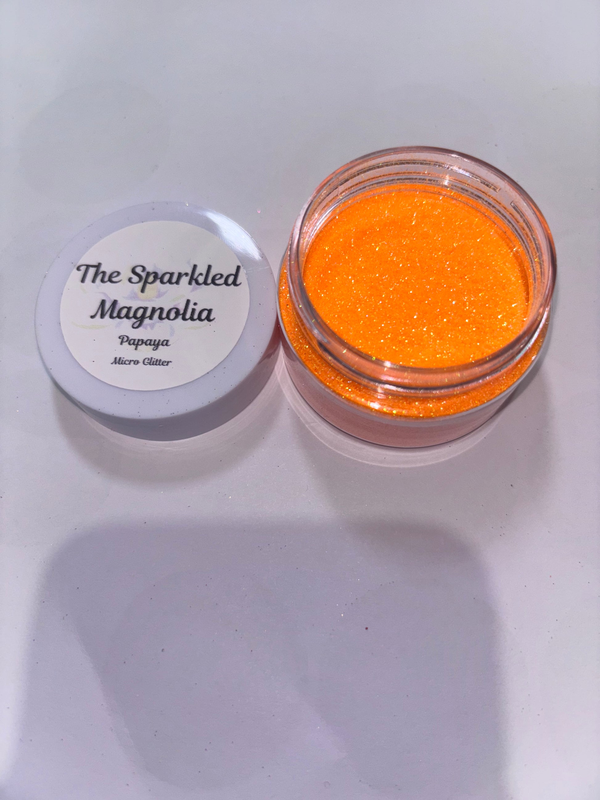 Papaya is a florescent orange Micro glitter than can also be used as an epoxy additive.
