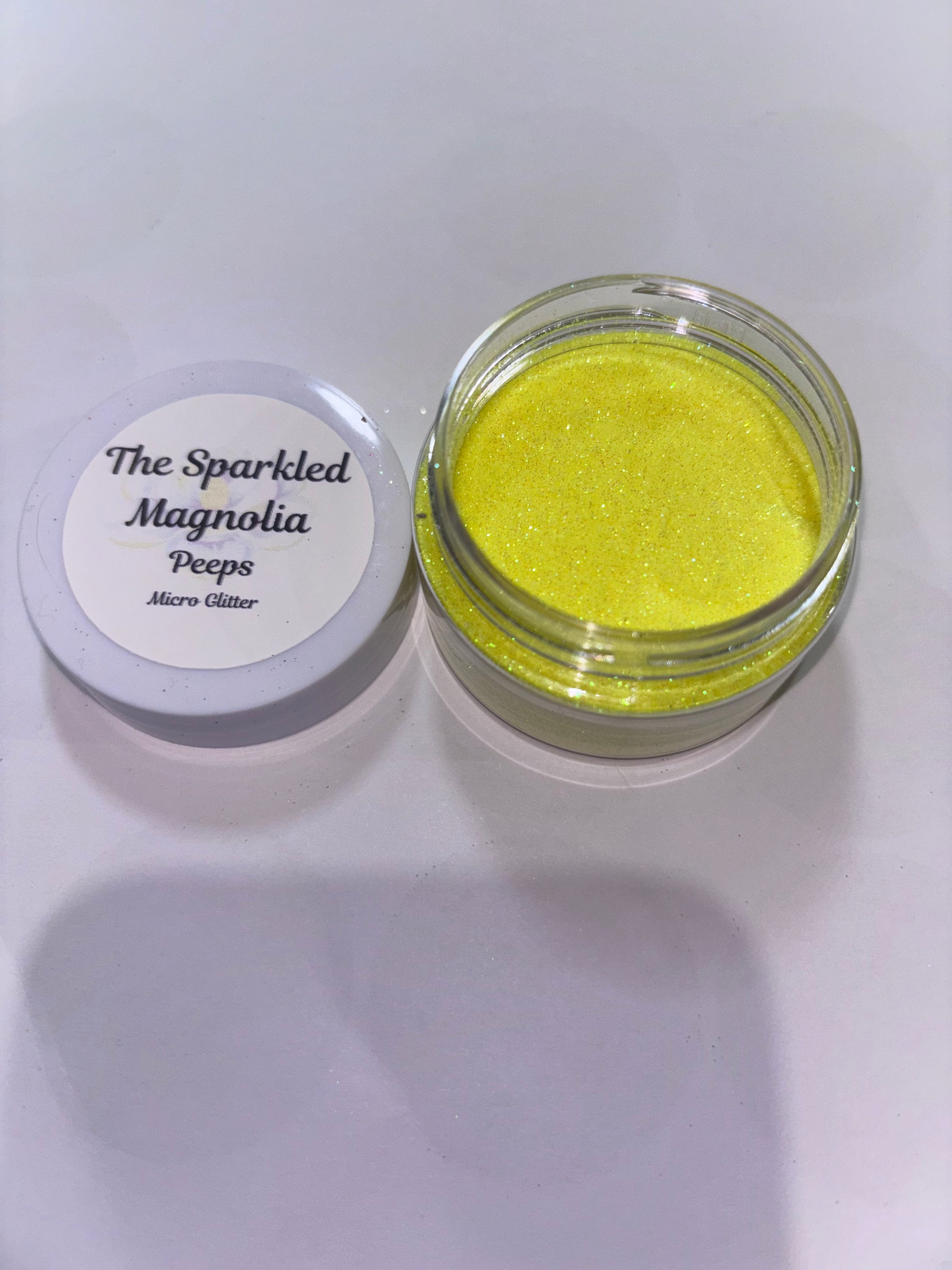 Peeps is a fluorescent yellow Micro glitter than can also be used as an epoxy additive.